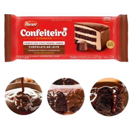 A Barra Confeiteiro Cobertura Fracionada Ao Leite 500 g Harald é uma cobertura de chocolate pronta para uso, com formulação prática que dispensa temperagem. Perfeita para quem busca agilidade sem abrir mão da qualidade.