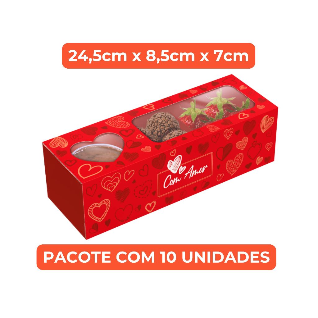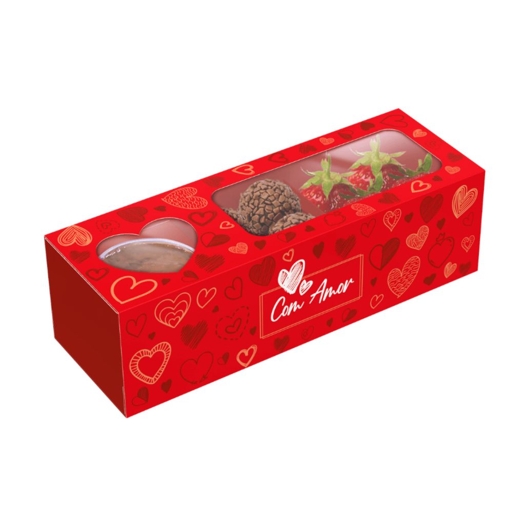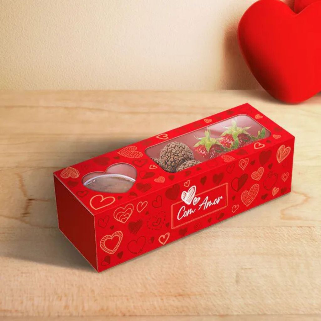 A Caixa Fondue Retangular Amor em Caixa Ideia é ideal para montar kits fondue e embalagens criativas com excelente apresentação. Com estampa temática, valoriza doces, frutas e acompanhamentos, sendo perfeita para presentes e vendas.