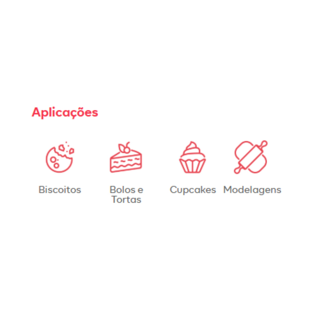 • Aplicações: bolos, cupcakes, tortas, modelagens e decoração em geral